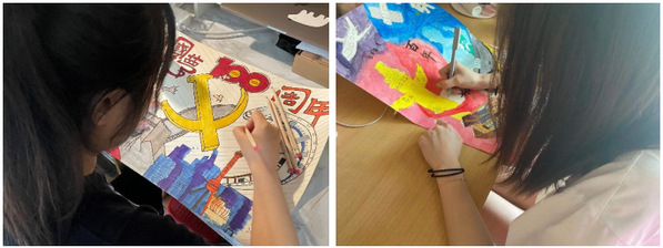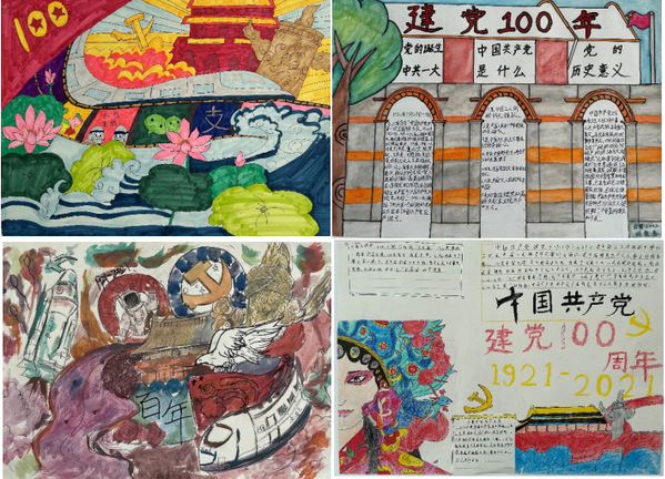 同学们用画笔感受了党的光辉历程与伟大成就,无论是绘画过程还是作品欣赏过程,都是一次深刻体会,在中国共产党的正确领导下,中华民族一步步实现伟大复兴,中国人民一步步从站起来、富起来再到强起来的过程,这是一种坚韧不拔、不懈奋斗、追求卓越、团结一致的精神,值得每一个人去深刻的学习、践行、传承。