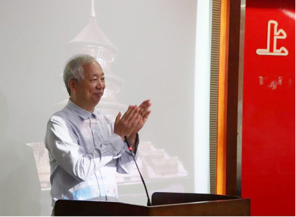 首先,谈理教授致辞。他对上海工匠王震华老师的到来表示热烈欢迎,并向大家介绍了王震华老师:自幼喜爱古建筑,16岁自学木工,学习各种榫卯结构和技艺。大学毕业工作后,一直致力于将技艺与艺术高度融合,研制了全榫卯结构的天坛祈年殿微缩模型和赵州桥微缩模型,具有手艺精湛、热爱创新、精益求精的工匠精神。