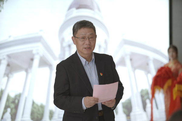 首先,新媒体与文法学院院长陈小明讲话。他介绍了本次美术展的主题“绽放”,希望各位同学能够通过本次平台绽放出自己的专业风采,他对个别同学的作品创意灵感进行了阐述,同时,也肯定了学前教育专业学生近期见习实践的表现,表达了对学前教育专业发展的美好期盼。