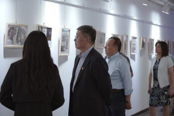 剪彩仪式在琵琶弹唱的精彩表演中正式开始。校党委书记李月松,副书记、副校长段仁启,副校长陈万里,副校长王蔚共同为本次“绽放”美术展剪彩,全场响起热烈的掌声!