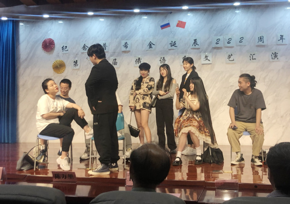 本次活动共有19个节目表演,涵盖诗朗诵、话剧、歌曲、舞蹈等不同形式,内容多样,精彩纷呈。其中,王心圆等同学表演的话剧《Хамский пассажир》(霸座)内容诙谐,角色生动,取材自高铁上的不文明行为,十分贴近生活,演出全程使用俄语,展现了学院俄语系学生扎实的语言功底。文艺汇演中,关凯新同学的歌伴舞和张格填同学的独舞将全场气氛推向了高潮。来自上海工商外国语学校的同学们也带来了精彩的表演。文艺汇演,在普希金的诗歌《Я помню чудное мгновение》(我记得那美妙的一瞬)中圆满结束。