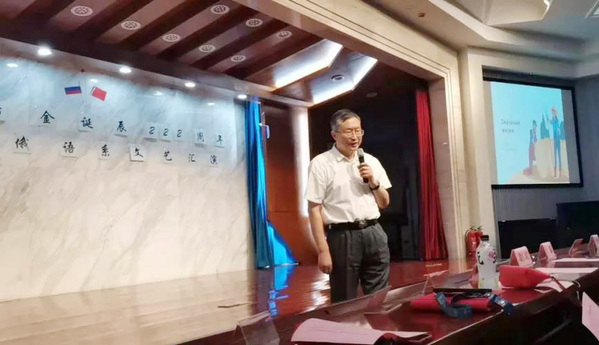 欧洲语言文化学院副院长王保士发表致辞。他肯定了俄语专业的建设与发展,无论在专升本方面还是国际合作办学方面都取得了极大进步,他对举办本次活动而努力付出的全体师生们表示肯定与感谢,并预祝活动圆满成功。