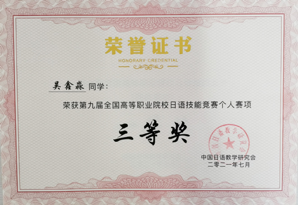 我校参赛学生和指导教师从年初就已着手开始对比赛进行筹备,耗时数月,历经预赛-复赛-决赛的层层角逐,最终斩获佳绩。在团体赛职场情景配音比赛中,我校刘思佳、罗嘉榛、宗子樱、李荣龙四位参赛选手声情并茂,完美演绎了作品中人物的职场形象。在个人演讲比赛中,吴鑫淼同学也凭借扎实的日语综合运用功底和较强的临场应变能力,获得了评委的一致好评。