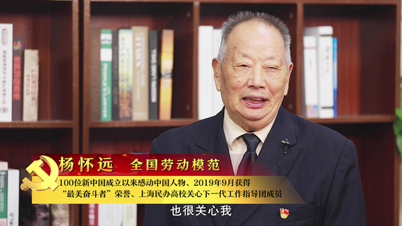 杨怀远将他立足本职岗位奉献的事迹和师生们进行了分享。今年84岁的杨怀远是原上海海运局长柳轮客运部服务员,数十年坚持用小扁担义务为旅客送行李,甘当人民的“挑夫”,被誉为“小扁担精神”。7月1日,杨怀远作为全国劳模代表参加了在天安门广场举行的庆祝中国共产党成立100周年大会。杨怀远表示,“甘当人民好挑夫”,就是党教导的全心全意为人民服务。要不忘初心,一辈子为人民服务。