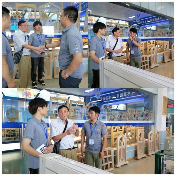 随后,孙岩同学及其指导教师沙榆翔带领陈小明院长参观了实训基地、孙岩同学的工位及其制作的作品等。