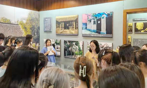 与此同时,由大数据2101、大数据2102、德语(中高职贯通)2103、法语(中高职贯通)2101、会展2101、会展2102班的200名学生组成的第二组实践课团队在“德法”课教研室主任倪丽娜、思政教师卜兆和教师陈美玲的带队下,前往校内的傅雷生平陈列馆开展思政课实践教学活动。