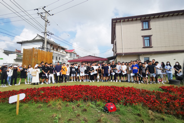 当日下午,由体育2101班、法律2103班、环艺2101班、视觉2101班、视觉2102班的158名学生组成了第一组实践课团队,在思政教学部副主任韩伟和思政教师赵雪的带队下,来到位于校外的“冠军村”——海沈村进行实践课程的开展。