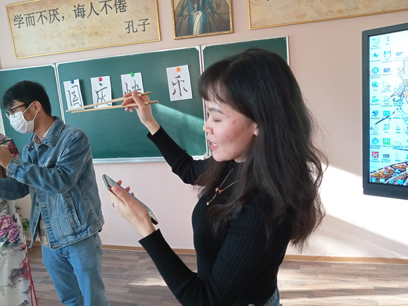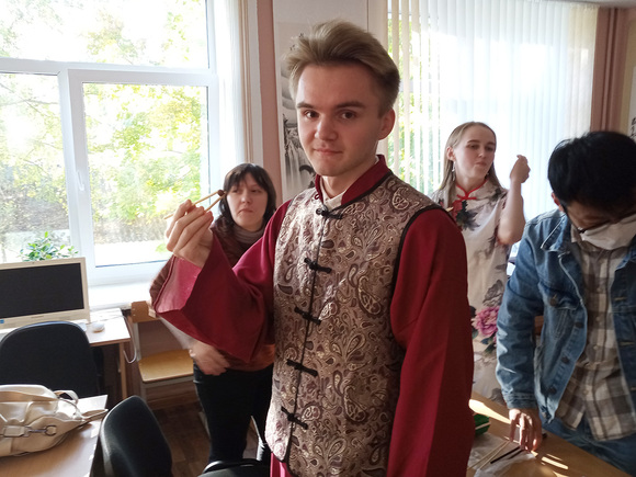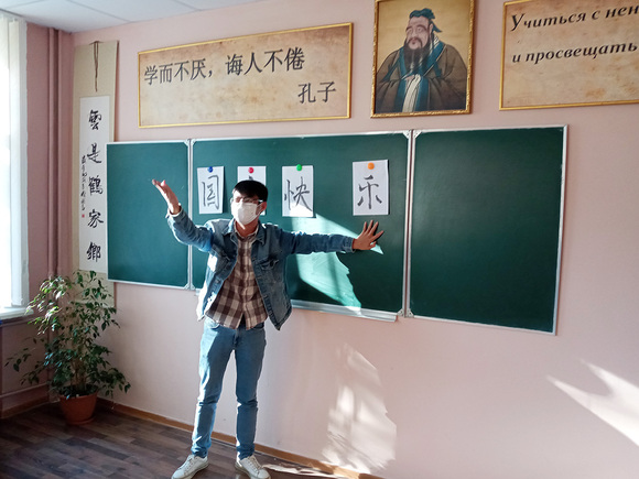 国庆假期期间,我校在白俄罗斯戈梅利大学设立的汉语教学中心与孔子学院共同组织了庆祝中国国庆节的中白文化交流活动。我校俄语毕业生王斐凡(2015级)和陈澜(2017级)参与活动,并向白俄罗斯师生介绍了中国的传统文化、历史古迹、风俗习惯等。活动上,学生们还进行了《论语》诵读、汉字学习、书法展示等有趣的交流互动。此次活动不仅弘扬了中华民族传统文化,营造了戈梅利大学浓浓的中国国庆气氛,还拉近了我校留学生与当地师生的距离,使得心更近、情更浓。