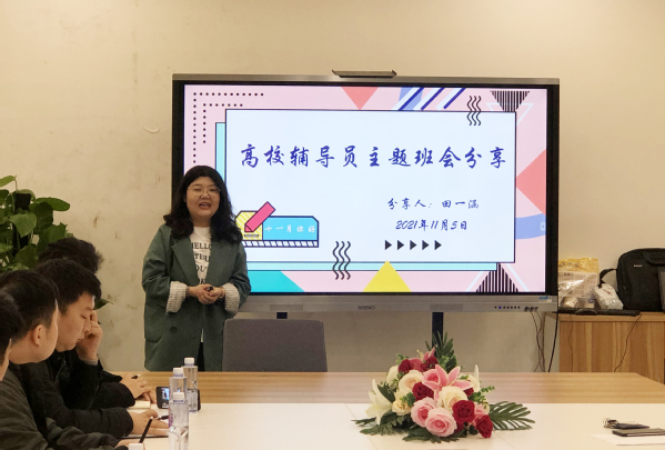 11月5日上午,第二次专题培训在学校党建服务中心如期举行,英语语言文化学院辅导员田一涵以“高校辅导员如何开展主题班会”为主题进行分享与交流。她首先对高校“辅导员”的多重角色及主题班会的含义进行了分析,随后,从主题班会的功能、主题班会的设计、主题班会的细节、主题班会的跟进四个方面进行阐述。同时,结合不同年级、不同班级、不同时间段等因素的分析,运用丰富的案例进行细致讲解,理论联系实际,让老师们对实施好一堂主题班会有了系统的认知。分享结束,新进辅导员老师们积极提问,针对目前碰到的主题班会问题展开了深入交流。