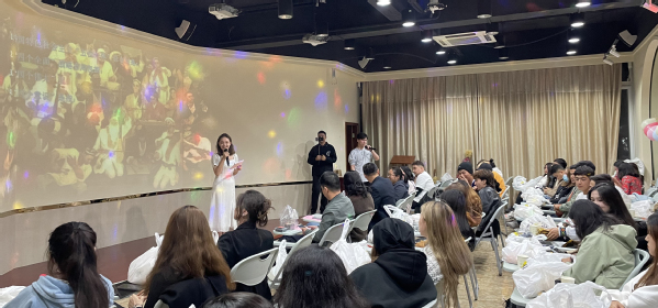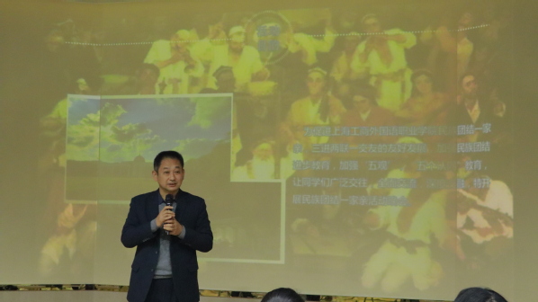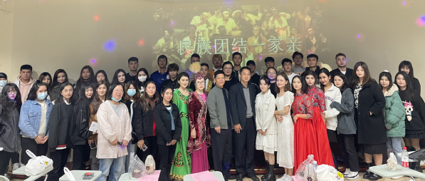 家是一个家,国是大中国,为响应民族团结教育要求,进一步加强学校各民族师生的交往交流,牢固树立中华民族共同体意识,学生处于11月11日在四号楼西班牙语实训室举行了“民族团结一家亲”文艺晚会,校党委副书记、副校长段仁启,学生处处长陈瑜,学生处副处长冉蓉,新疆派驻教师易校石,临港高校派出所警官吴惠忠及新疆籍少数民族学生与部分汉族学生出席本次晚会。