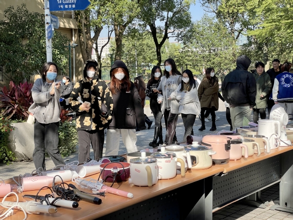 11月10日-11日,学校在中区广场举办了“119”消防安全月系列活动之“学生宿舍违章物品警示展”。通过对卷发棒、电水壶、电热杯、电火锅等各类宿舍违章用品的展示以及消防知识展板的宣传,引导大家学习了解消防安全知识,树立正确的安全观,提高风险防范意识。