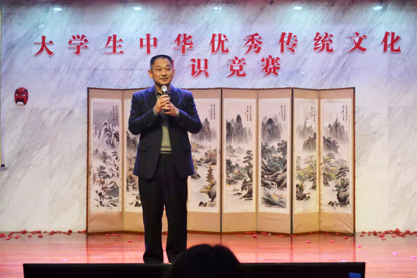 校党委副书记、副校长段仁启为本次大赛致辞。他指出,知识竞赛活动不仅是一场角逐竞争的比赛,更是一堂学习中华优秀传统文化的公开课,希望参赛选手和同学们能在比赛中感受传统文化的巨大魅力,做中华优秀传统文化忠实的传承者和弘扬者。