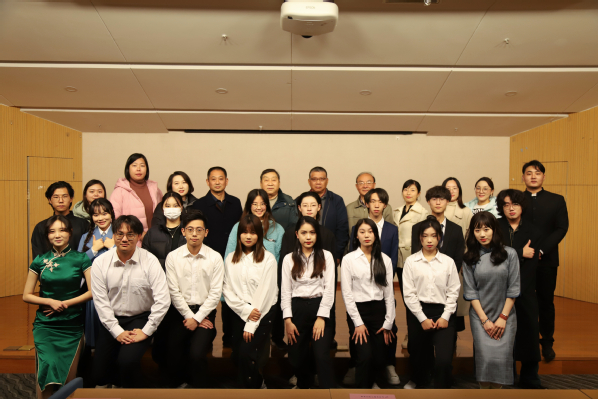 最后,副校长王蔚为随馨话剧社和播音班颁发礼品。出席领导和全体演职人员合影留念。