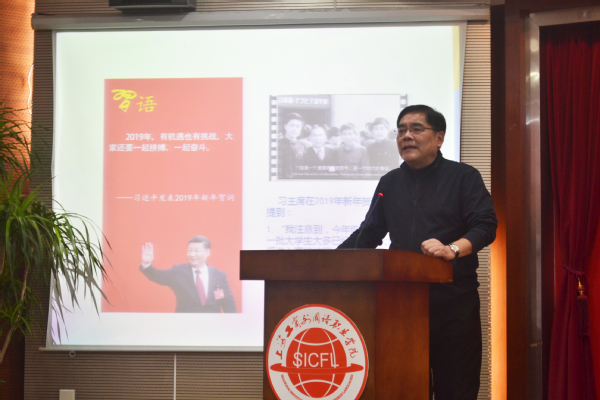 12月21日下午,上海大学东亚研究中心主任、外国语学院马利中教授应邀参加东方语言文化学院“名师进课堂”系列讲座,在学校八号楼二楼报告厅做了题为《“人口负债”和“生涯现役”-从新词流行语看日本人口社会的变化》的学术报告。本次讲座由东方语言文化学院院长张冬梅主持,东院日语系教师和21级部分学生参加。