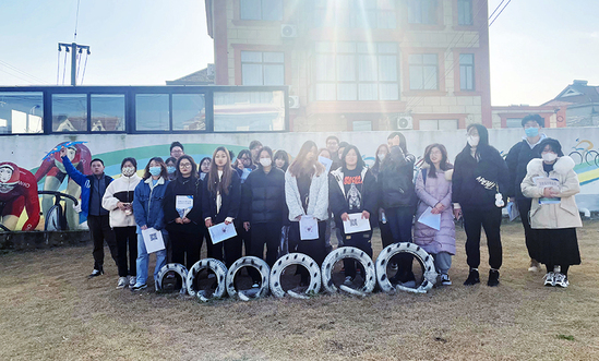12月24日下午,上海工商外国语职业学院大一学生来到奥运冠军钟天使的家乡“网红冠军村”惠南镇海沈村。这是学校思政教学部组织的第十二组实践课团队,也是本学期最后一次实践教学活动,共有来自学前、艺术、游戏等专业的201名学生组成。思政教学部教师卜兆、倪丽娜和陈美玲带队青年学生,在自行车文化公园、花细草工坊、外来星工作室、小确幸画室、钟天使荣誉室等打卡点深度体验海沈村独具特色的人文艺术,学习钟天使顽强拼搏、奋勇向上的奥运精神以及感受上海农旅融合发展、乡村振兴的成果与底蕴。