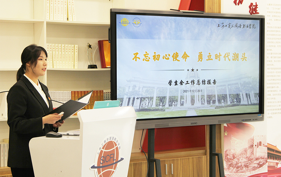 为进一步总结本年度工作,明确今后工作方向,提高工作效率,12月28日全天,2021年度上海工商外国语职业学院团学组织年终工作总结述职评议会于大学生活动中心分时段举办。党委副书记、副校长段仁启,学生处处长陈瑜,学生处副处长冉蓉,校团委书记杨燕玲老师出席活动。