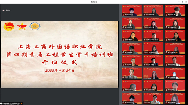 4月29日下午,上海工商外国语职业学院第四期“青马工程” 学生骨干培训班开班仪式通过腾讯会议方式在线上举行。
