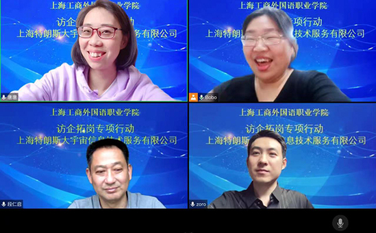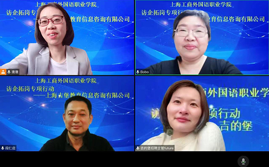 特殊时期,学校党政领导高度重视毕业生就业工作,为落实教育部办公厅关于开展全国高校书记校长访企拓岗促就业专项行动要求,持续推进毕业生就业工作,5月2日下午,上海工商外国语职业学院校领导访企拓岗促就业专项活动通过线上方式举行。校党委副书记、副校长段仁启带领招生就业处副处长、英语语言文化学院副院长、新媒体与文法学院副院长,与上海特朗思大宇宙信息咨询服务有限公司以及上海吉堡教育信息咨询有限公司相关招聘负责人进行了在线视频交流会。