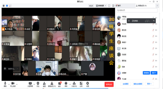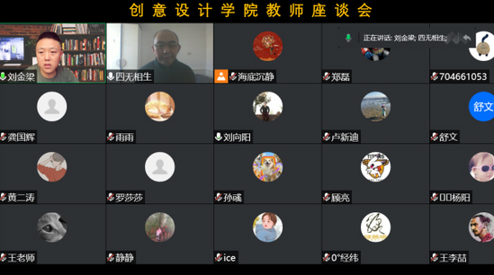 为全面总结上半学期教学工作,有序推进教学改革,及时部署近期教学重点工作,创意设计学院通过腾讯会议于4月29日和5月5日分别召开了线上期中教学工作学生座谈会和教师座谈会。20级、21级学生座谈会分别由卢新迪和黄二涛两位老师主持召开,各班班长、团支书、学习委员参加了会议。教师座谈会由教学副院长刘金梁主持,院长王正明教授,行政副院长刘向阳以及全体教师、辅导员参加了会议。