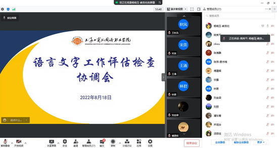 8月18日上午10点,我校召开语言文字工作评估检查协调会。校语言文字工作委员会全体成员、各职能部门、二级学院负责人等近30人参会,会议由教务处处长、校语委副主任杨晓玉主持。