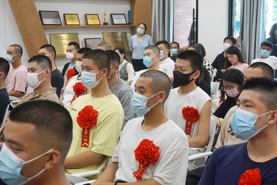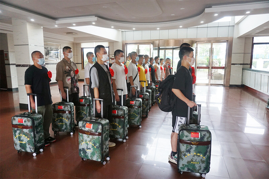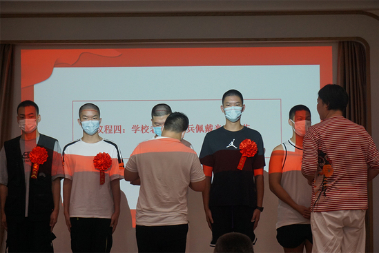 随后,学校老师一起为新兵佩戴光荣入伍红花。