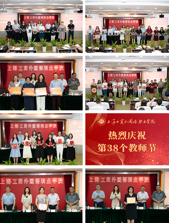 在全场热烈的掌声中,钱莹董事长,校领导姚秀平、李月松、段仁启、王蔚分别为学校获聘2021年中高级职称的教师颁发了聘书,为荣获2021年度学校考核优秀部门和优秀个人、2022年度线上“教学之星”、2021年上海市青年教师培养资助计划课程思政教学案例展演一等奖以及2021年度上海高职思想政治理论课先进集体的单位和个人进行了表彰颁奖。大会号召全体教职工学习他们努力践行立德树人的师德本色,学习他们身上追求卓越、勇于探索的优秀品质。