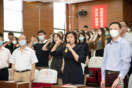 在基础教学部沈李领誓下,19名新入职教师进行集体入职宣誓,他们的到来,为工商外发展注入了新的活力。