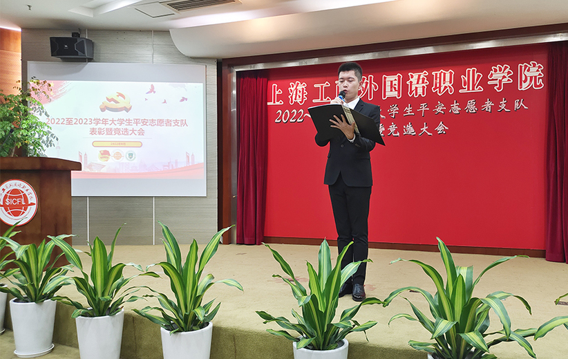 9月22日晚6点,2022-2023学年上海工商外国语职业学院大学生平安志愿者表彰暨竞选大会在八号楼二楼报告厅如期举行。大学生平安志愿者支队指导老师裴毅同20级、21级支队队员一同参会。会议由支队副支队长艾志华同学主持。
