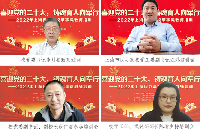 10月10日至10月12日,经市民办高校党工委研究决定,依照疫情防控要求, 2022年上海市民办高校军事课教师骨干培训班线上专家授课顺利举行。10日上午,上海市民办高校党工委副书记江鸿波,校党委书记李月松,上海市民办高校党工委主任科员周光狼,校党委副书记、副校长段仁启以及上海市民办高校党工委干部周欢出席开班仪式。仪式由校学工部、武装部部长陈瑜主持。