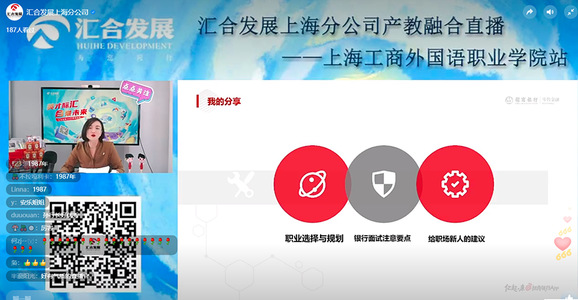 第一场讲座于10月27号晚六点在云端开启,邀请汇合发展有限公司总经理刘伟双、招商银行支行行长孙安乐女士以及学校优秀校友燕佳婕,共同为23届毕业生带来一场干货满满的讲座。