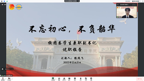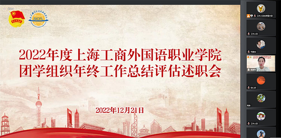 为进一步总结本年度工作,明确今后工作方向,提高工作效率,12月21日全天,2022年度上海工商外国语职业学院团学组织年终工作总结述职评议会在腾讯会议进行。党委副书记、副校长段仁启,相关职能处室负责人、各二级学院学生工作负责人出席述职会。