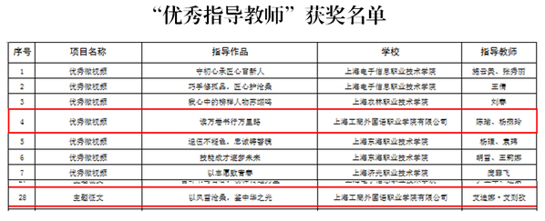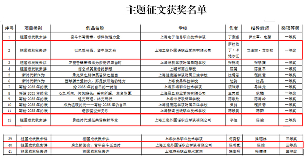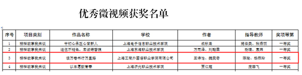 近日,上海市教育委员会公布了2022年“技能成才 强国有我”主题教育活动获奖名单,我校学生获得一等奖2项,二等奖1项,三等奖1项,优秀指导教师3人,学校获优秀组织奖。