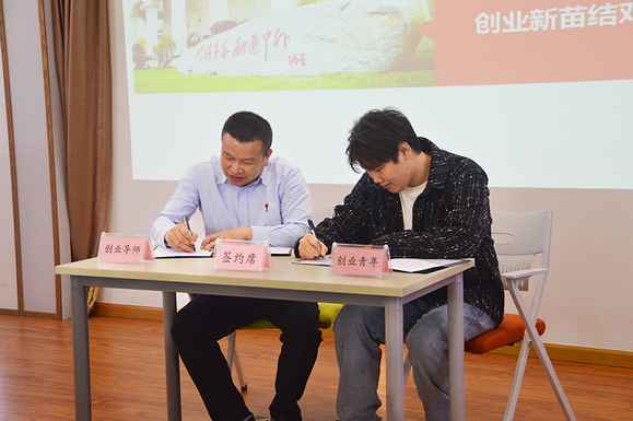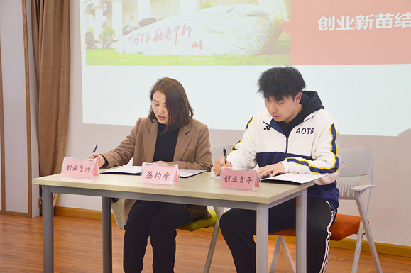学校创业指导站联合社区、创业园区,提升培育服务成效,打通创业服务最后一百米,现场专家与同学签订新苗结对协议。结对后,专家将从项目的具体情况出发,多角度、全方位地提供跟踪式服务,包括创业政策咨询、对接资源、管理经验、发展规划等,帮助创业新苗走得更稳更远。