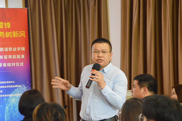 出席此次项目路演暨新苗结对活动的有浦东新区就业促进中心惠南分中心的徐青主任、浦东新区就业促进中心创业科金鑫副科长,浦东创业指导站高校联络员杨先玲老师,上海市创业指导专家志愿团的三位专家饶应福、蒋博、周海燕,学校招生就业处处长武桂玲、副处长唐池珍以及各二级学院副院长以及创业社师生。
