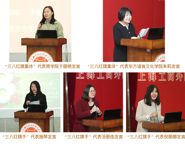 随后,“三八红旗集体”代表商学院于丽艳,东方语言文化学院朱莉,以及“三八红旗手”代表公共外语教学部施琴、人事处汤丽佳、基础教学部倪丽娜分别畅谈教书育人的感受和体会。