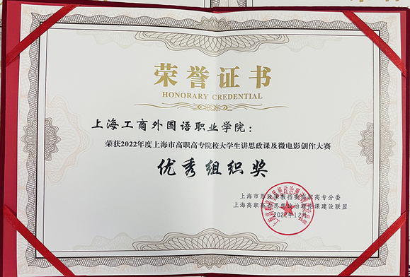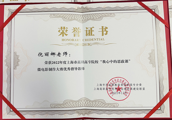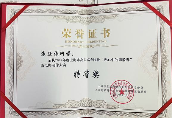 在马院思政教师的积极指导下,我校学生在2022年度上海市高职高专院校大学生讲思政课及微电影创作大赛中取得骄人成绩,荣获1个特等奖,2个一等奖,1个二等奖,2个三等奖和1个优秀奖。其中,朱骁伟同学创作的视频作品《不“白”辛苦》荣获“我心中的思政课”微电影创作大赛特等奖,倪丽娜老师荣获优秀指导教师。我校因组织有力,成绩突出,获得优秀组织奖,由沈李老师代表学校领奖。