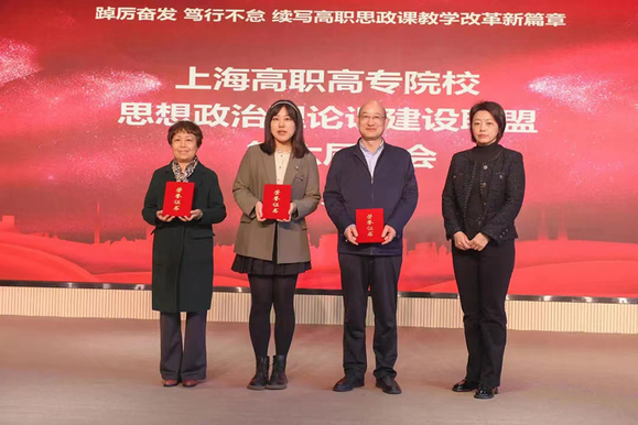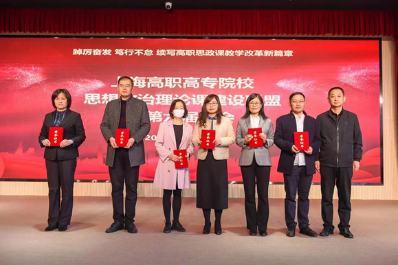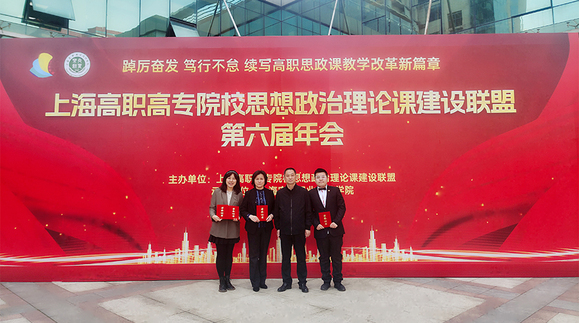 3月11日,上海市高职高专院校思政课建设联盟第六届年会在上海农林职业技术学院顺利举办,我校党委副书记、副校长段仁启,马院院长沈李,基础教学部党支部书记、副主任倪丽娜,获奖学生代表朱骁伟一同出席大会。