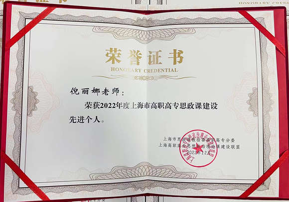 在思想政治理论课建设工作先进个人评选中,我校倪丽娜老师获评先进个人称号。
