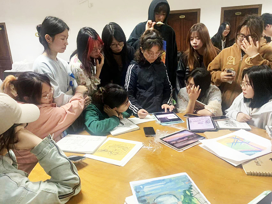 宏村位于安徽省黄山市,有着精美古建筑和“中国最美丽的古村落”美誉。通过写生方式,同学们穿梭在青瓦白屋、弄堂曲巷、小桥流水间,领略宏村风情,深入了解了宏村历史和文化,用手中的画笔勾勒一幅幅美好画卷。在江南水乡园林美的独特感受中,同学们对每个角落都细心描摹,无论是精美的花窗、古朴的石桥,还是虔诚的庙宇、清澈的水系,都让人沉醉其中。指导老师深受这意境渲染,一边不厌其烦、耐心细致指导和点评每一位同学的绘画作品,一边也是拿起画笔在画纸上记录下这里的独特建筑和美丽景色,所有人仿佛都置身于一个梦幻般的美妙世界。