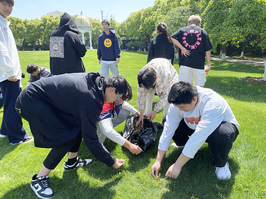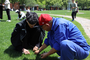 经过现场学习,同学们干劲十足,在欢声笑语中开始了劳作,阳光下原本寂静的草坪因为劳动者的加入变得欢快而灵动。瞄定杂草、掐住根部、用力拔起、装袋,一气呵成,同学们带着一股热乎的新鲜感,干得不亦乐乎。随着时间的流逝以及越来越炙热的阳光照射,很多同学由兴奋变得安静,经过短暂的劳作,大家纷纷表示,看似简单的工作也并不简单,不仅出力出汗,还考验耐心与毅力,也终于感受到校园绿化环境背后是大叔们辛勤付出的汗水,真诚表达着未来要更加爱护环境的心声。不仅如此,很多同学认为,虽然是简单的锄草劳作,却有不简单的感悟——校园劳动也能促进团队协作力与班级凝聚力的提升。