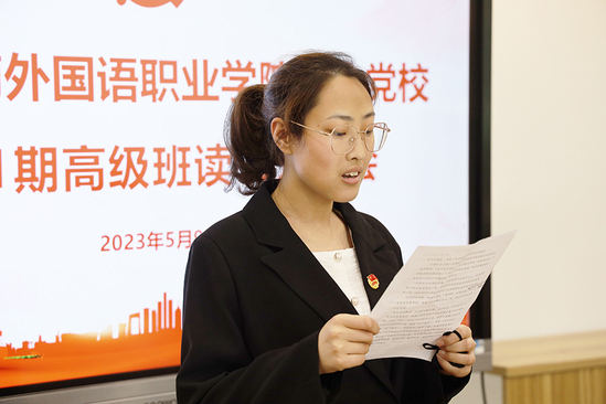 我校业余党校负责人冉蓉老师首先从学习与阅读的视角讲述了开设“学理论、读原著”的初衷,希望学员们能够通过课堂导学、课外自学与主动阅读的方式不断求真理、恒信仰、修德行。冉老师说明,在主题教育开展之际将课后自主阅读延展为读书分享会,旨在在个人学的基础上加强互学互交流,进而不断深化真学真思真用,让青春的思想之花花开有声。