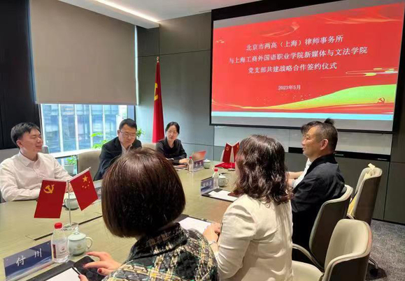 党建引领,携手共育。5月10日,以“学思想、强党性、重实践、建新功”为主题,我校新媒体与文法学院党支部与北京市两高(上海)律师事务所党支部举行党建共建战略合作签约仪式,进一步发挥党建引领高质量发展作用,同时以党建共建为契机,深化专业人才培养,加强产教深度融合,扎实推进主题教育走深走实。
