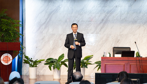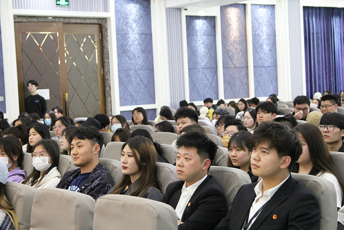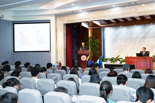 吴建国教授的报告以莎士比亚《哈姆雷特》中的名句“To be or not to be, that is the question.”引出“To read or not to read, that is a question.”这一严肃话题。整场报告由“伟人榜样的力量”“作家的读书”“我的读书经历”“读书的作用和好处”以及“读书的方法”等部分组成。在“伟人榜样的力量”部分,吴建国教授在介绍了毛泽东和习近平青少年时期如何读书的情况后还特别指出,毛泽东思想和习近平新时代中国特色社会主义思想的形成与他们青少年时期的刻苦学习、博览群书关系紧密。在“读书的作用和好处”部分,吴教授特别强调,为更好地发展自己而读书(self-fulfillment),为更好地理解世界而读书(self-enhancement)。至于“读书的方法”,吴建国教授强调为夯实外语基础,需要系统读完两套以上的教材、完整通读外语世界文学名著原著50部以上,并在读书时要做到眼到、手到、心到。吴建国教授知识渊博、阅历丰富,用自己的切身经历激励同学们认真读书、刻苦学习,不仅要顺势而为,更要顺时而为,谱写人生发展的新篇章,为在座学生的学习规划起到很好的指引作用。