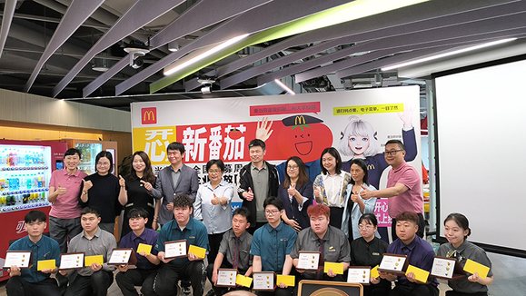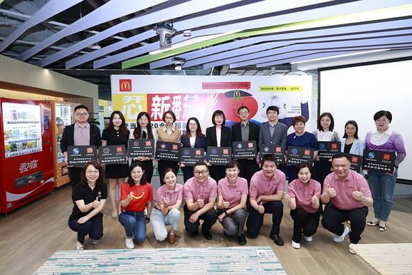 在5月20日的项目启动仪式上,上海有14所与金拱门签订此项目的共同参加高校。金拱门高级总经理罗伟先生做了欢迎、介绍了金拱门公司以及市场发展的计划,金拱门(中国)首席人员官王艳伟介绍了对入职青年人的培养路径,上海市场领导力学院院长王玮向我们介绍了企业对不同阶段员工的各类成长赋能的培训。随后金拱门向审批通过供需对接育人项目的学校进行了授牌,并给优秀的校企合作学校和优秀实习学生及员工进行了颁奖,各校学生也对自己在金拱门实习的经历与心得做了交流分享,随后,企业方组织各校项目负责老师参观了他们的巨无霸大楼以及他们的汉堡大学的授课场所。