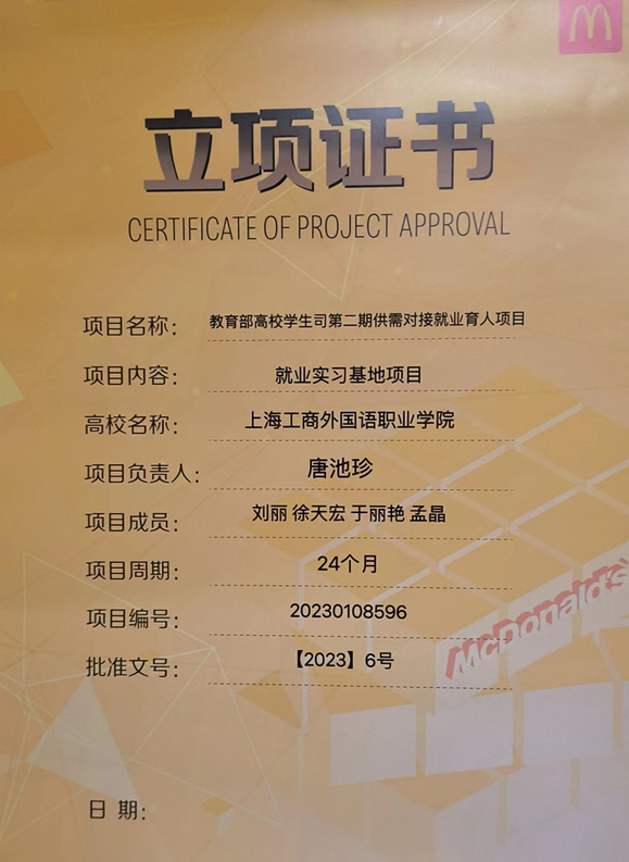 为响应国家“高校毕业生等青年就业关系民生福祉、经济发展和国家未来”的战略号召,落实党中央“稳就业”“保就业”决策部署,更好促进我校毕业生就业,持续深化校企合作,形成人才供需的有效对接,发掘产教融合的新模式与新机会,2022年年底,我校申报了与金拱门(中国)有限公司的供需对接“就业育人”就业实习基地项目,2023年4月,获得教育部批准。