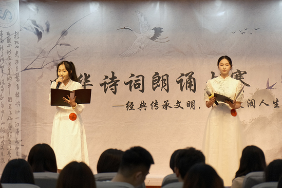 “中华诗词诵读大赛”活动引领学生在诵读中亲近中华经典,在亲近中热爱中华文化,同时将中华优秀传统文化根植于心,做一个“腹有诗书气自华”的新时代青春学子。