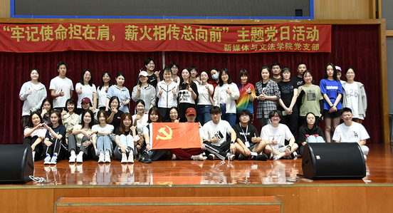 为深入学习习近平新时代中国特色社会主义思想,深化落实党的二十大精神,夯实党员理论知识学些,新媒体与文法学院党支部于6月9日中午在南区体育馆开展了“牢记使命担在肩,薪火相传总向前”主题党日活动。学院全体党员教师和入党积极分子参加本次活动,校党委副书记段仁启为本次活动致辞,马克思主义学院院长沈李、基础教学部副主任倪丽娜和基础教学部辅导员蒋靖柯老师莅临现场参与并指导。