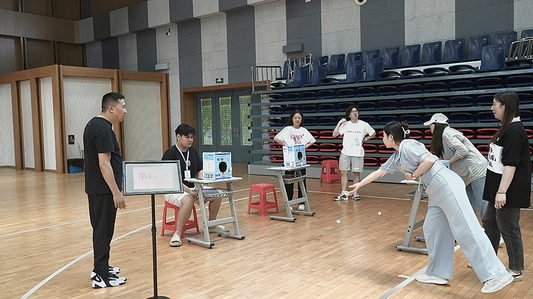 第四关也是最后一关,由小组的最后一名成员抽签回答问题,答案正确则把乒乓球投进左边箱子,答案错误则由工作人员告知正确答案,队员把乒乓球投到右边箱子。完成三题便闯关结束。