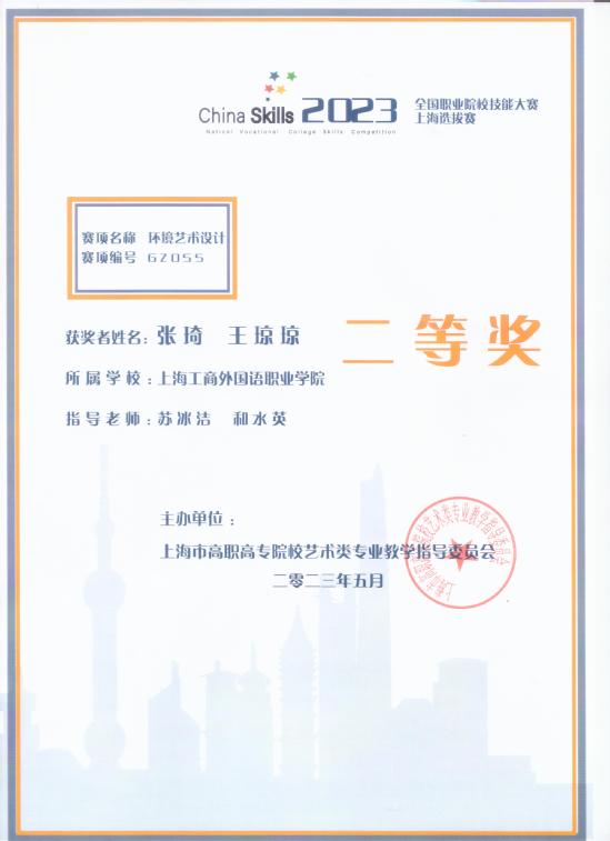 最终,通过他们自身不惧艰苦的训练,三位同学凭借精湛的设计技巧和出色的创意,获得了评委高度评价,分别获得到了环境艺术设计二等奖和视觉艺术设计三等奖的优异成绩。