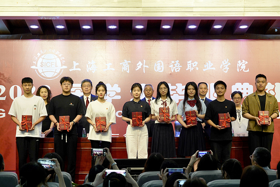 然后,学校党委书记李月松宣读2023届市级、校级优秀毕业生表彰决定。今年,我校有89名同学被评为“上海市优秀毕业生”,208名同学被评为“学校优秀毕业生”。宣读完毕,获得“上海市优秀毕业生”“学校优秀毕业生”荣誉称号的代表依次上台领奖,主席台就座的学校领导为他们颁发荣誉证书。